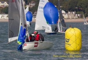 We often see skilful sailing out in this lovely bay of Saundersfoot but this week with the weather conditions on red alert at the start it has most definitely been a pleasure to watch the skill of the Lark sailors in manoeuvring their boats around some very tactical courses set by the clubs OOD John Griffiths with of course assisted by an array of various glamorous helpers out on Elgar. One of the many helpers was in the form of brother Paul who between them manage to control both the competitors and courses which were set in some very changeable winds on occasions.