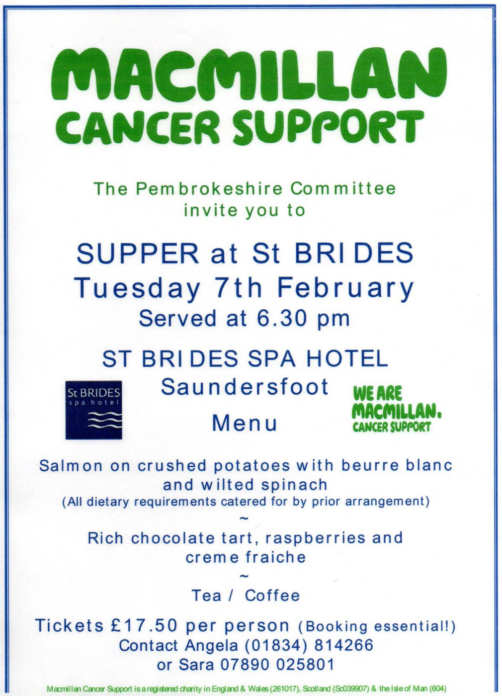 A great chance to support MacMillan on Tuesday 7th Feb 2017 at St Brides Spa Hotel
