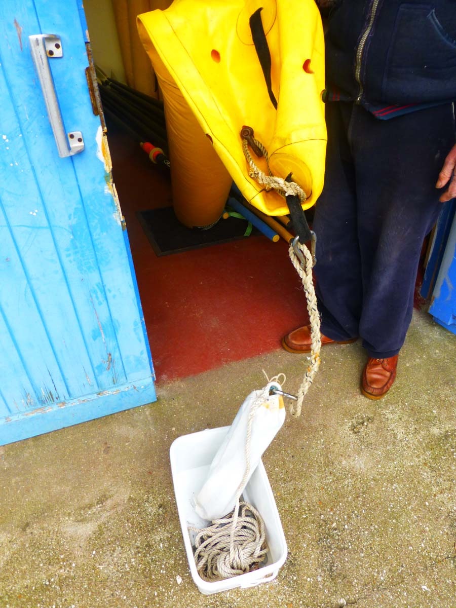 There is a lot going on down at the club these days getting ready for the new season, the new Bosun's Locker is progressing and now available for boat and engine repairs just contact Mick for details and use. Terry as always spend an enormous amout of time both at the club and at home making and repairing equipment. One of his recent quests has been to get the right weights on the bottom of the yellow pin bouys and in a container that will not damage the boat and is easy to carry. Well with an old sail and a sowing machine you can do wonders so well done Terry.